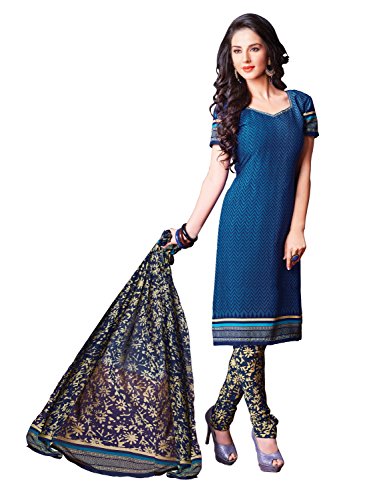 Khushali Presents Printed Crepe Dress Material(Blue,Beige)