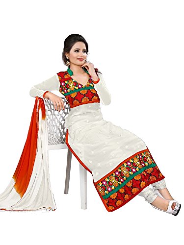 Multi Retail White Heavy Embroidered Georgette Semistitched Suit With Dupatta,Bottom And Inner Material