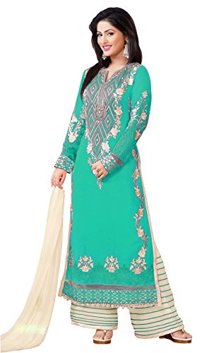Buy from : Styles Closet Designer Straight Cyan Georgette Embroidered Salwar suit(Free Size,pack of 1,BND-6198)