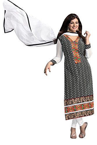 Vibes Womens Cambric Patch Work Straight Dress Material (V243-10 _Black _Free Size)