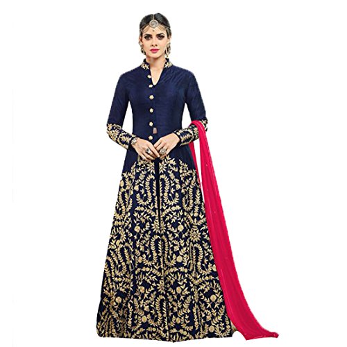 Buy from : Ethnic Empire Women's Banglory silk Semi Stitch Salwar Suit (Ethnic_ER110116_Blue_Free Size)