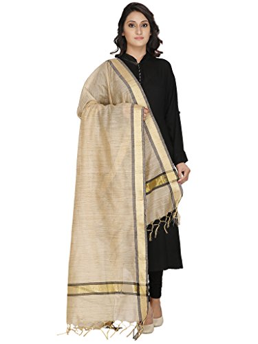 Devam Women's Silk Cotton Blended Jacquard Dupatta (Beige/Black) 90X250 Cms